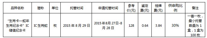 经湖南华强艺术品交易中心(以下简称本中心)研究决定,第三批送审的品种中《IC生肖蛇》进入托管流程。