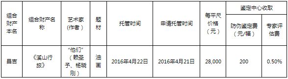 7、本中心将根据组合财产运营管理人的申请,以组合财产投资标的作品实际鉴定入库作品数量及市值,另行发布相关组合财产挂牌上市交易公告。