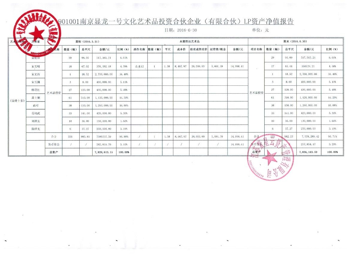901001南京显龙一号文化艺术品投资合伙企业(有限合伙)LP资产净值报告6.30