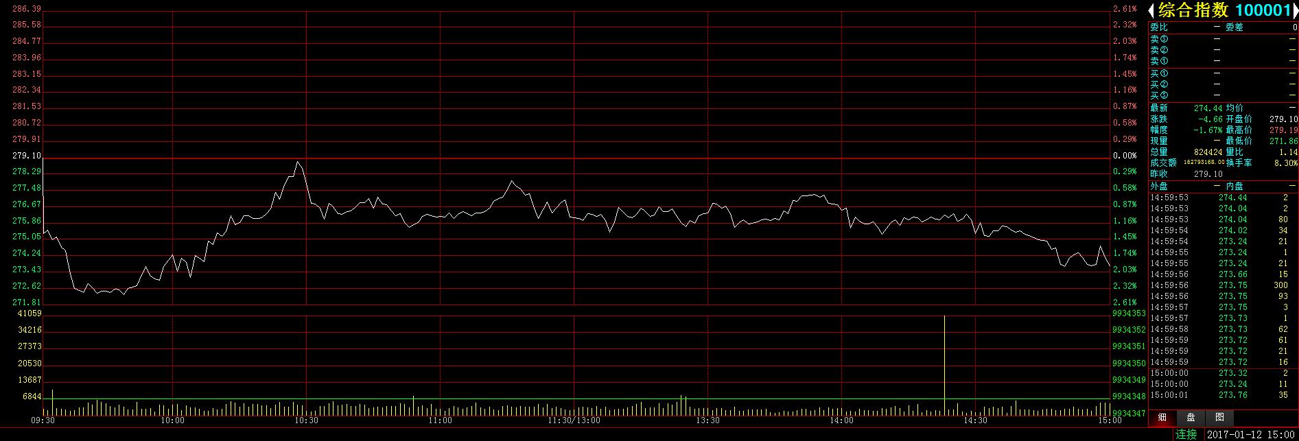 今日市场走出低位窄幅震荡的行情。综合指数收于274.44点,跌1.67%,成交6.60亿元。艺术品指数收于93.87点,跌3.17%。收藏卡指数收于272.25点,跌1.46%。全市有10家上涨(3家涨停),有34家下跌(6家跌停)。