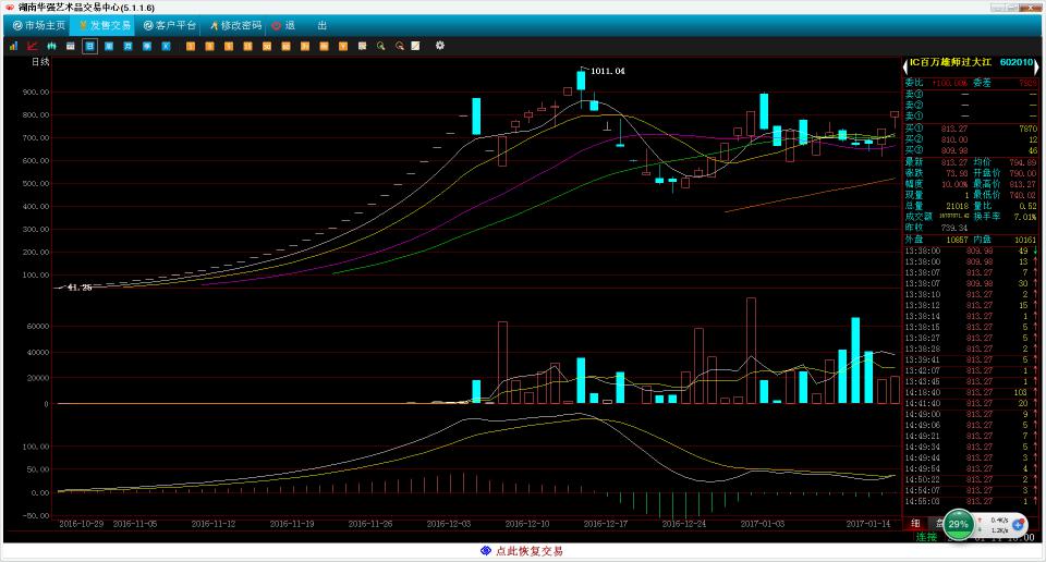 602010IC百万雄师过大江,开盘跳空高开,随后回补缺口后,拉至高位换手,截止收盘涨停,后市向上若能突破前期高位,建议持续关注。