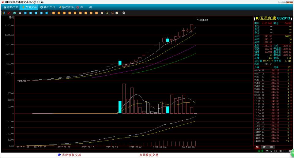 华强艺术品交易中心今日开盘316.97点,最高325.27点,最低315.18点,截止收盘上涨0.32%,收于317.98点,换手率6.25%,全天成交1.58亿元。